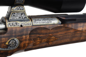 Bolliger then approached Winchester and requested five Model 70 bolt actions for the project with custom, consecutive serial numbers. Actions with such special serial numbers are extremely rare, as well. It is not Winchester’s policy to do this. But because of John’s status as one of the world’s premier custom riflemakers, they finally agreed and produced the actions for this unique series.