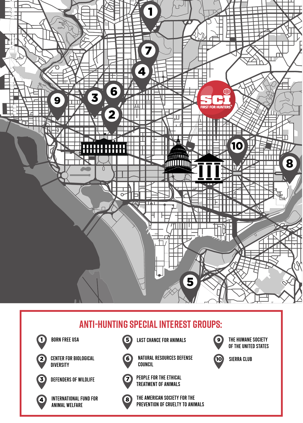 It is home to SCI’s International, Federal, and State & Local government advocacy efforts, as well as litigation, conservation and communications operations.