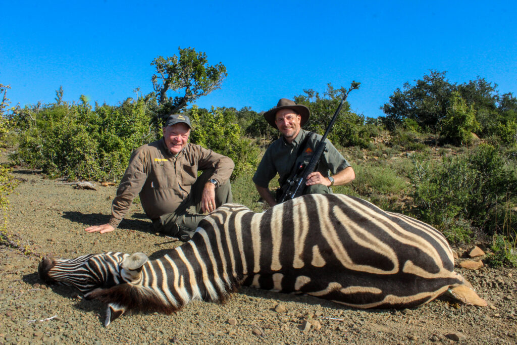 Main goals fulfilled, his game changed…as often happens in Africa. One morning, I saw him drop a weird-horned “cull” kudu with a brilliant 350-yard shot. Then he decided to add a zebra. It was a calm morning. On his Spartan bipod, at 500 yards, it was a long poke. His first shot maybe could have been a couple inches farther right, but it was well-executed. More shots were required, and then the zebra went down. It stood up when we approached and needed a finisher.