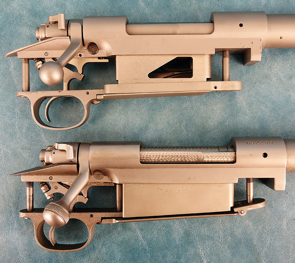 And lastly, the fixed floorplate and its recessed locking button found on military actions were changed to a hinged floorplate arrangement. (One exception was the ’09 Argentine, which had a hinged floorplate.)
