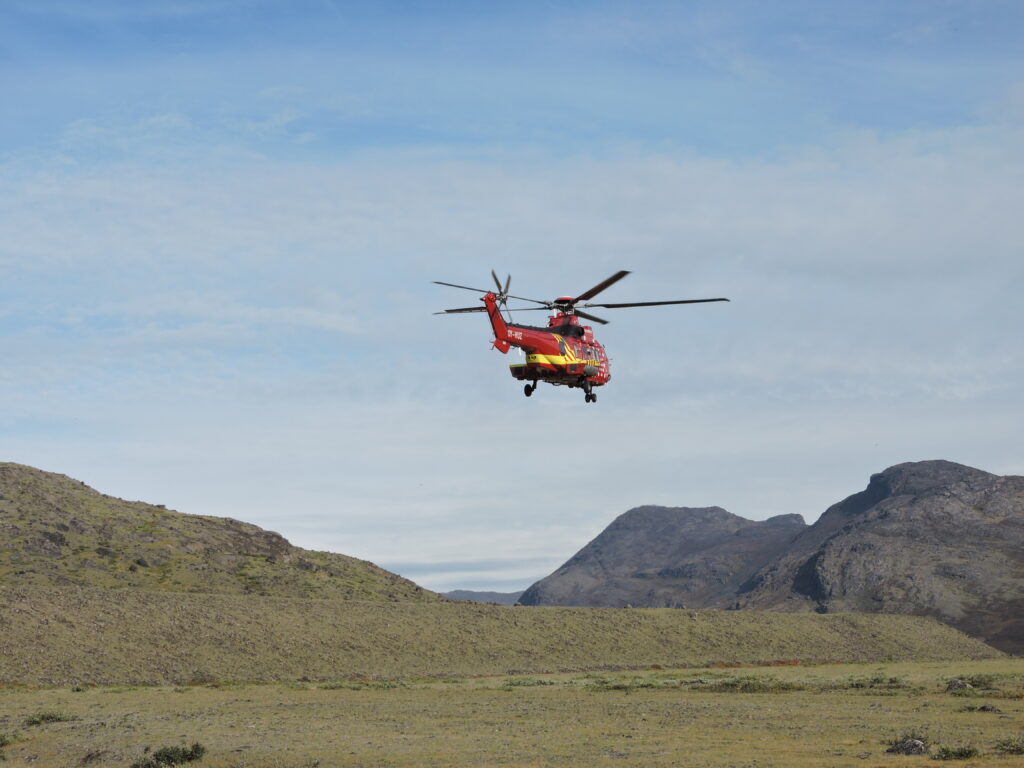 Leaving from Syracuse, N.Y., I flew to Greenland where our group was met in Kangerlussuaq by Mette, who quickly got us organized and over to the helicopter hangar. From there, it was a relatively short flight to camp. As we flew over the terrain I was struck by how rugged and ancient the landscape looked, with bare steep mountains, and rocky valleys sliding below us. We even spotted a few groups of muskox.