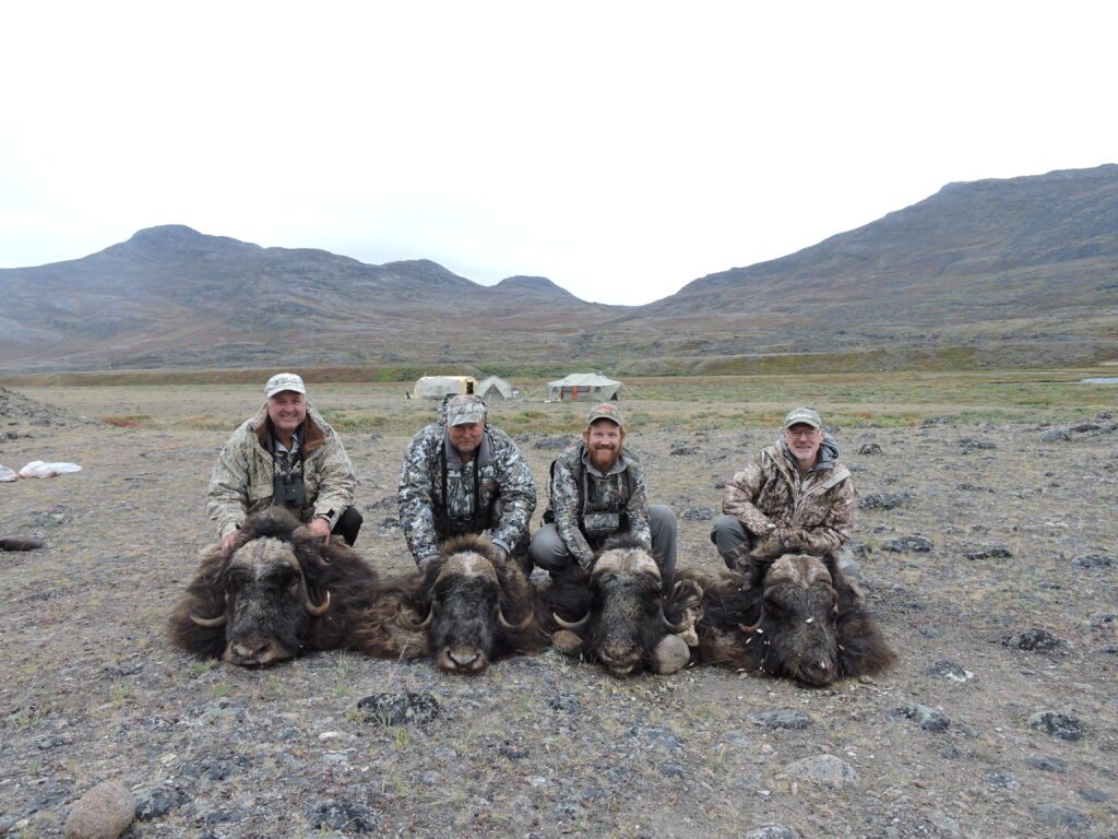 We dropped off four hunters at one camp and then flew to another camp about six miles away. Our group consisted of T-Claude Devall, Chad Richard, Jody Moss all from Louisiana and myself, from upstate New York. We landed at our camp and were met by the Feldmann’s exceptional staff, Morten Stochkendahl, Philip ulrick von Arenstorff and Jens-Enok Hansen. Camp consisted of four tents: one large tent for the hunters, with a dining table, a cook tent, a storage tent, and a tent for the guides. We got unpacked, settled in, and spent the rest of the evening getting acquainted and spotting muskox from camp.
