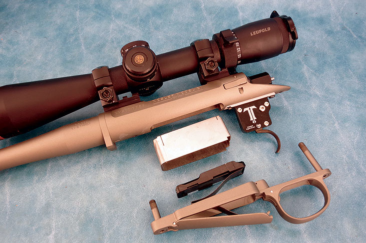 Like the 700, the 21’s receiver is tubular, has the same footprint as the 700 and employs the same washer-type recoil lug. The recessed bolt face with plunger ejector is also the same, as is the anti-bind groove in the right-side locking lug. The fire-control unit is TriggerTech’s Model 700 trigger, and I’m pretty sure the hinged floor plate bottom metal unit is that of the Model 700 BDL. But like I said, though the 21 is a lot like the 700, it is a step above in fit, finish and refinement.