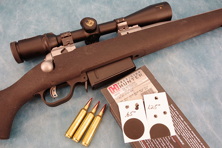 In the meantime, however, I mounted a Nikon Monarch 3 4-16×42 scope (alas, Nikon scopes are no more), and went to the range with Hornady’s 162-grain ELD-X and Nosler’s 175-grain ABLR, both of which are loaded to 3.340-inch COL. Three-shot groups with the Hornady load ranged from .85 inch to 1.35 inches, which for a super magnum with a barrel that’s not yet broken in, damn good.